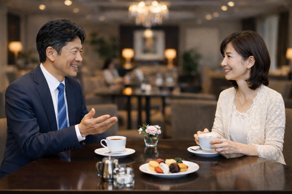 お見合いの場所や日時の調整もカウンセラーが行いますのでご安心ください。ご希望によりお見合い当日の付き添いや、服装のアドバイス、会話の進め方などのアドバイスも行います。